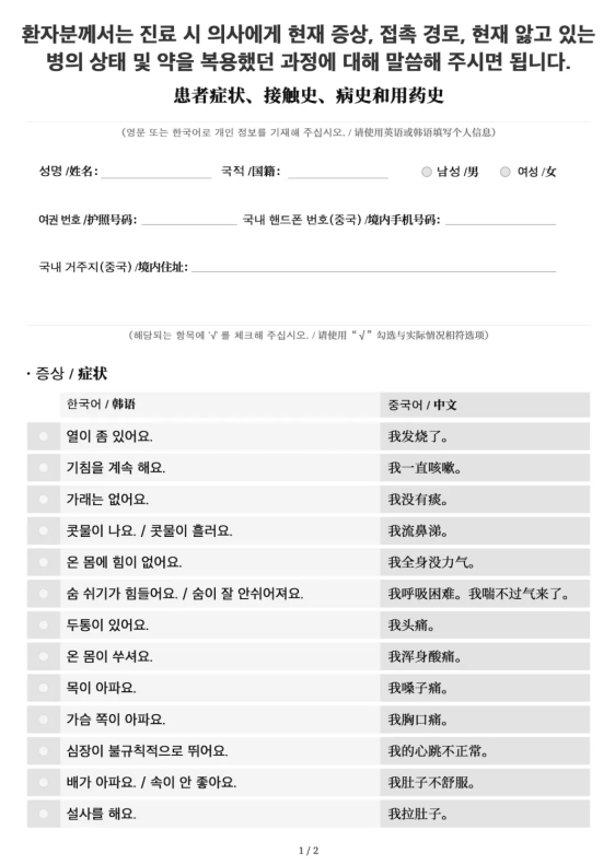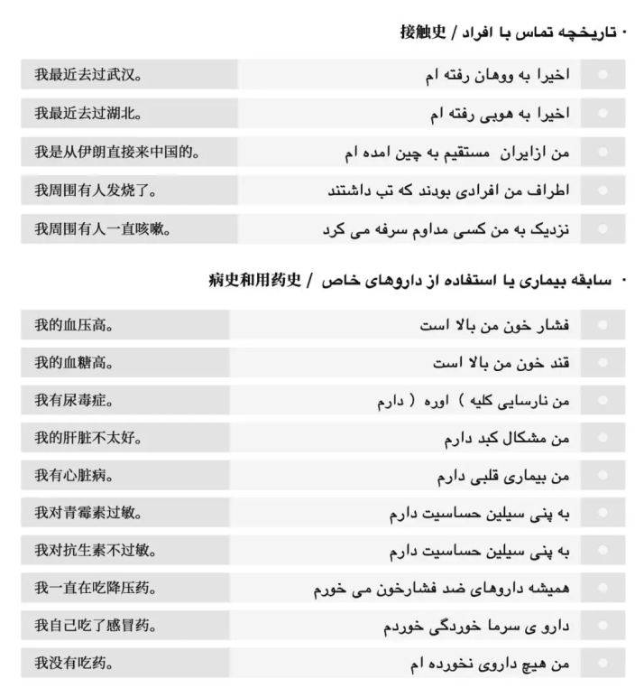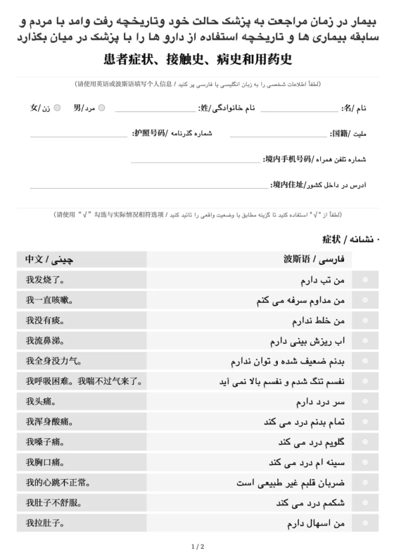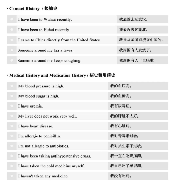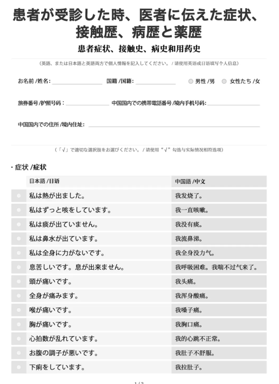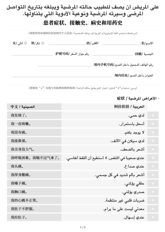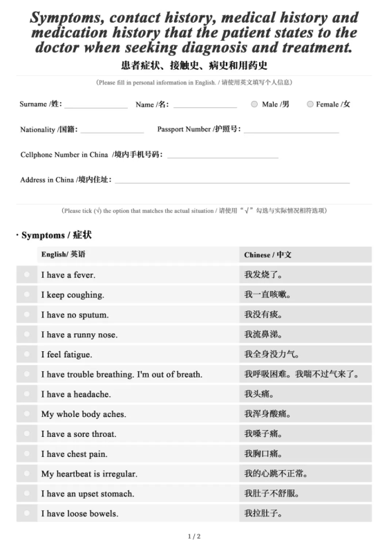 A Guide to the Prevention and Control of COVID-19 Epidemic in Foreign Languages-Expressions for Diagnosis (Print Version) solves the cross-language communication problems between doctors and foreign patients. It helps doctors to have a quick grasp of the symptoms, contact history, medical history and medication history of the patient. There are 28 expressions for diagnosis, which have been translated into Japanese, Korean, Farsi, Italian, Arabic, and English.Now we have the above 6 language versions available for you to check and download.